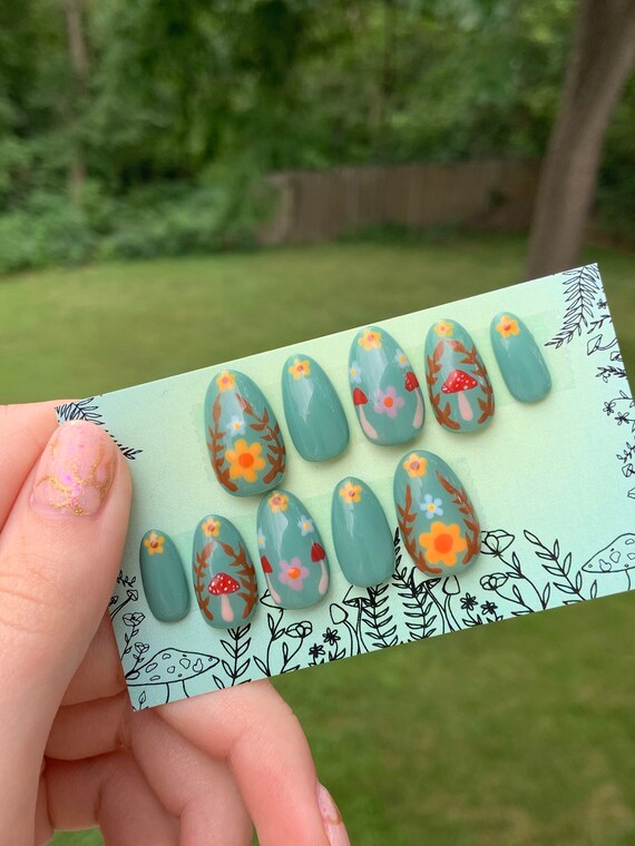 Hand Painted Cottagecore Press On Nails Etsy Israel